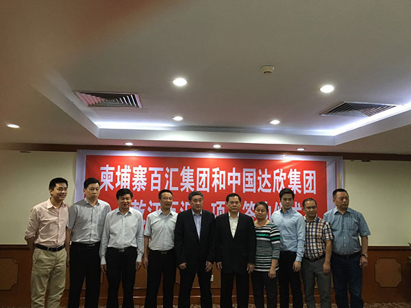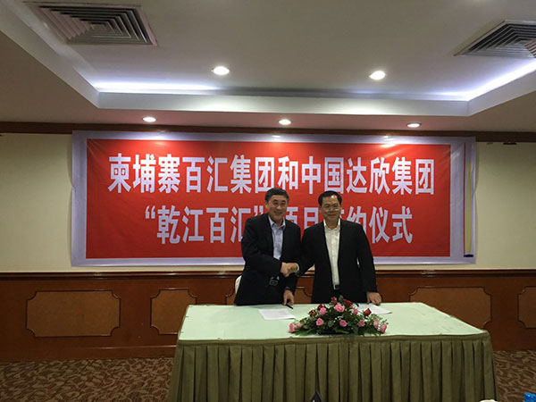 爱游戏ayx首页集团第一个海外项目——乾江百汇于4月19日在柬埔寨金边大酒店签约,该项目是由柬埔寨百汇投资集团与爱游戏ayx首页集团以共同合作、共同开发的新型商业模式来运营。柬埔寨百汇集团林财通勋爵、林宝庭总经理与爱游戏ayx首页集团董事长马和军、党委书记刘厚纯、副总经理徐仁忠、上海佩里建筑规划设计公司创始人郑翊等共同见证了项目的签字活动。