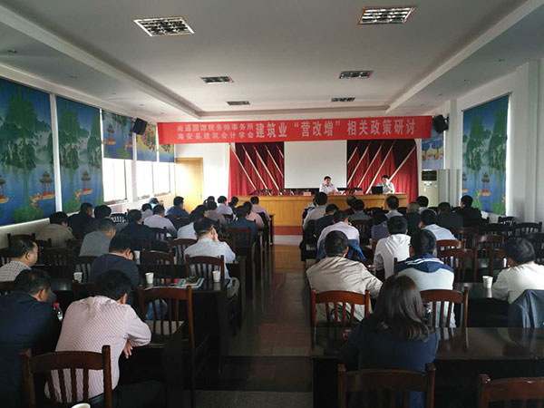 集团公司董事长马和军在培训前做动员讲话,他要求集团上下要高度重视“营改增”给建筑行业带来的冲击和机遇,参培人员要虚心聆听财税专家的讲解,认真学习、理解、适应“营改增”政策,在新的税制改革起跑线上,要用新的思维、新的架构,不断完善新的管理流程,以务实有效的行动积极应对“营改增”。培训邀请了县建筑会计学会会长黎胜玉高级会计师、海安县国税局税征科科长刘家健、海安国源税务事务所所长徐进注册税务师等专家,分别从营改增的目的和意义、解读营改增试点文件及通告、营改增实务及纳税申报等进行了讲解。