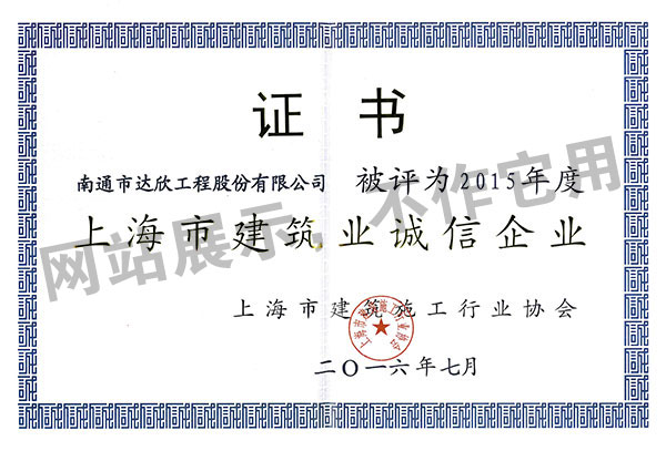 8月16日,2015年度上海市建筑施工企业综合实力排名、上海市建筑业诚信企业、上海市建设工程白玉兰奖、上海市优质工程(结构工程)颁奖大会在上海杨浦区小南国花园酒店隆重举行。第一工程公司被授予2015年度上海市建筑业诚信企业。这是第一工程公司连续九年获此殊荣。