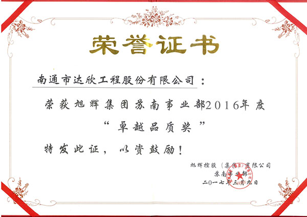 会上,公布了2016年度苏南旭辉供应商评选结果,公司有幸被评选为苏南旭辉“卓越品质奖”,这是公司首次获此殊荣,同时也是此次春茗会上中唯一获此殊荣的建筑企业。