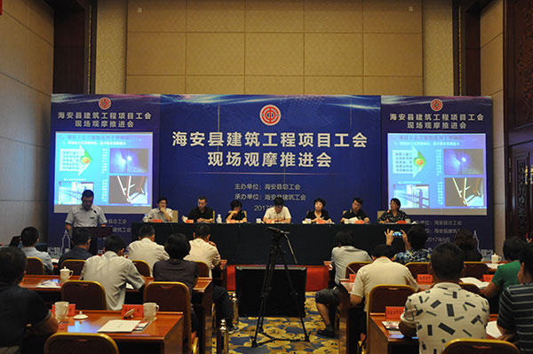 会议由海安县总工会党组书记柴宝清主持,第四工程公司项目经理徐祝军同志代表集团对紫竹锦江项目工会建设情况进行了大会交流发言。他从围绕助力发展精细化,提升服务发展能力;围绕服务职工精准化,提升服务职工水平;围绕自身建设规范化,提升工会建家实力等三个方面介绍了项目工会的开展情况。