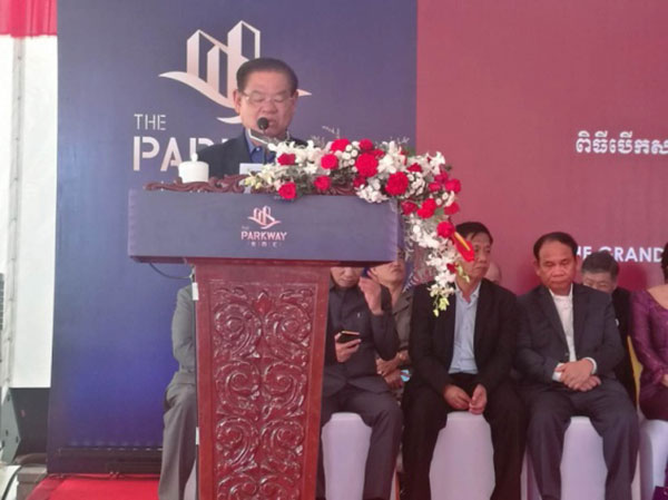 柬埔寨副总理兼内政部部长苏庆亲王阁下,在致辞中盛赞中柬合作项目金百汇进展顺利,希望未来彼此双方能有更长远的发展,为中柬友谊再谱新篇。