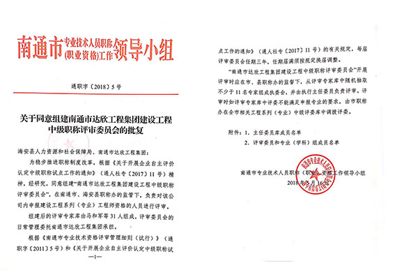 自2018年起,爱游戏ayx首页集团将在县、市职称办的领导下,自主对本公司内申报国家级建设工程系列(专业)工程师资格的人员进行评审。只要符合中级职称申报条件,均可在南通职称网通过“南通市爱游戏ayx首页工程集团建设工程中级专业技术资格评审委员会”进行申报。此次公司获得中级职称自主评价认定资格,既是上级主管部门对公司人才管理工作的肯定,也是公司近年来重视实施人才战略,加快人才引进与培养,企业技术人员综合素养水平能力不断提高的有效体现