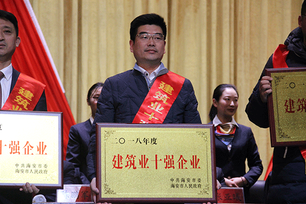 2月11日下午,海安市2018年度总结表彰大会在市文化艺术中心举行,对2018年度取得显著成绩的757个先进单位和538名先进个人给与表彰。我公司在表彰大会上一举囊括七项殊荣: