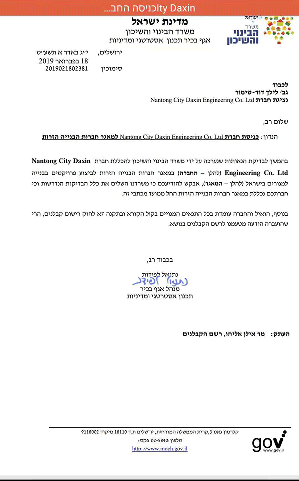 以色列作为世界上唯一以犹太民族为主体的国家,工业化程度高,经济实力强。近年来随着国内人口稳健增长,国内建筑企业的建设能力远远不能满足日益增长的住房供给需求,因此以色列政府启动国际招标,在全球遴选住房建设经验丰富、财务状况良好的外国建筑公司参与以色列住房建设。经过激烈的角逐,凭借着雄厚的实力和严谨的态度,爱游戏ayx首页集团以优秀的评分,成为获准进入以色列建筑市场的6家外国建筑公司之一。自此,爱游戏ayx首页集团将享有在以色列公开招投标建筑项目的资格,并可以和当地公司合作进行房地产开发。通过前期考察、接洽,目前集团已与当地多家房产企业达成合作共识。
