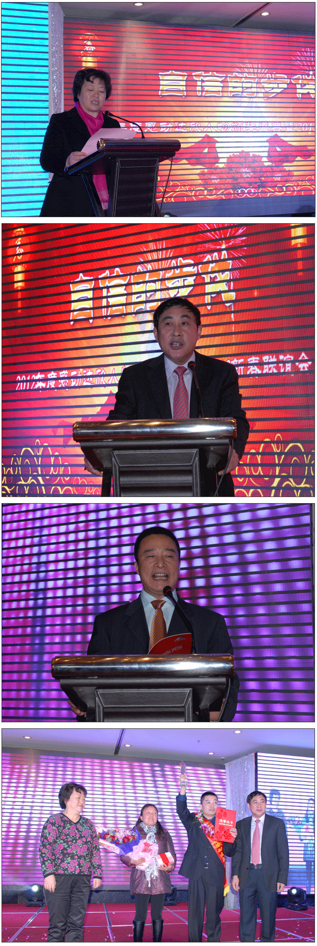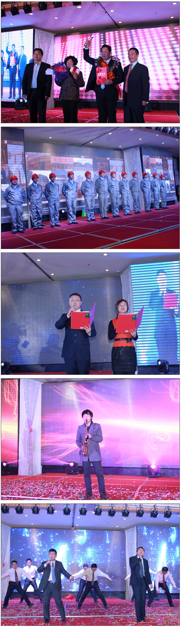 公司党委书记刘厚纯宣读了表彰决定,县委书记单晓鸣与公司董事长马和军、县长陆卫东与公司党委书记刘厚纯、县政协主席朱春与公司董事会顾问徐桂寿等领导一同颁发了荣获2012年度公司优秀突出先进代表(“感动爱游戏ayx首页”人物代表、杰出代表、新锐代表)以及国家优质工程奖、全国AAA级安全文明标准化工地等创优奖项。