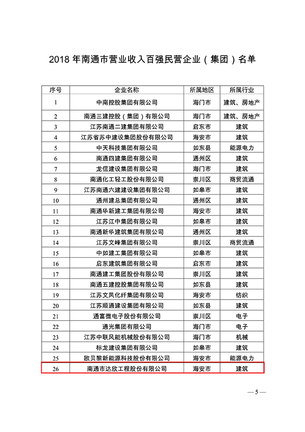 4月23日,南通市工业和信息化局发布关于2018年南通市营业收入百强民营企业(集团)情况的通报。爱游戏ayx首页以出色的业绩荣登百强企业榜单,列26位,排名海安第5位(海安共有26家入围)。