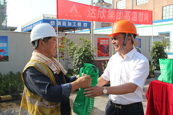 在东洲华府项目部,项目经理徐元根介绍了项目的有关情况,刘厚纯书记在巡视了整个施工现场后对现场的文明施工、质量样板区、一站式安全培训体验馆等设施投入给予了高度评价。他要求项目部要持之以恒,将现场管理常态化,为九公司放好样带好头。该项目自今年3月中旬开工以来,一线职工连日奋战、赶工期,抢进度。高温季节来临,项目部切实做好了夏季防暑降温工作,储备防暑用品,确保一线职工既按序时进度施工,又能安全度夏。在施工现场,刘厚纯把慰问品一一分发到一线职工的手中,并叮嘱他们一定要错开高温时点、保重身体,注意休息。