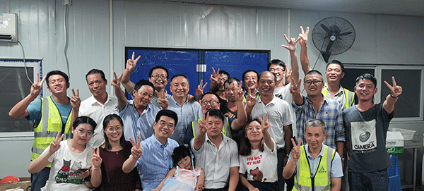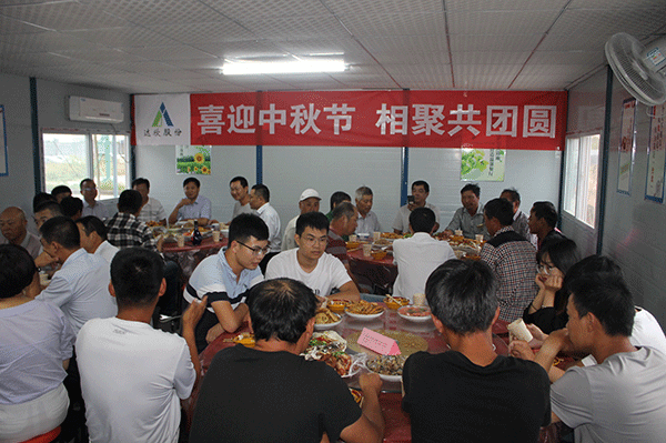 第六工程公司经理徐仁忠以及各部门负责人齐聚边各寨棚户区改造项目部举行了中秋联欢宴会。一首《恭喜发财》掀起了晚宴的第一个高潮,年轻大学生以及其他管理人员也踊跃登台献唱。项目部准备了精美礼品,为优秀者颁发奖品,整场晚会持续了近三个小时,大家在欢快、轻松气氛中度过。