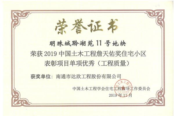 项目在建设过程中,公司领导班子带领项目员工齐心协力,以打造高品质住宅、一流住区环境为宗旨,注重工程创优工作,通过精心组织、科学施工,确保了施工过程安全文明,铸就了卓越的工程品质。先后获得“苏州市姑苏杯”、“江苏省建筑施工标准化文明示范工地”等荣誉称号。