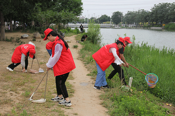 6月28日下午,爱游戏ayx首页集团·鲁班传人志愿服务第六分队前往唐山市站前路环城水系沿线开展“清捡垃圾、美化河道”志愿者活动。