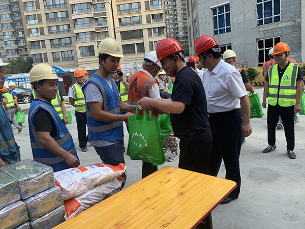 市长于立忠一行为大家送来了毛巾、防暑降温饮品等消暑物品,感谢大家为建造和谐社会、美好家园在高温酷暑中依然坚守,为祖国、为家乡做贡献,同时也希望大家立足本职工作,继续发扬特别能吃苦、特别能战斗的主力军作风,展现新时期爱游戏ayx首页铁军队伍特有的风采,并反复叮嘱大家一定要安全施工,合理安排作息时间,劳逸结合,保重身体,做好防暑降温措施。