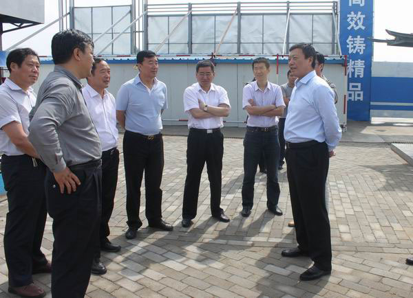在施工现场辅楼一层大厅,第七工程公司经理王建国同志汇报了工程施工进度、施工质量、安全文明以及下一阶段工程进度的目标,随后孙副厅长、吴副市长等领导检查了施工现场,对该工程质量、文明施工、工程进度予以了充分肯定。