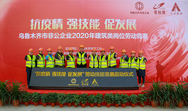近日,乌鲁木齐总工会主办的以“抗疫情、强技能、促发展”为主题的乌鲁木齐市非公企业2020年建筑类岗位劳动竞赛在十一工程公司碧桂园黄金时代二期项目部举行,乌鲁木齐市总工会副主席黄光林、乌鲁木齐市总工会非公企业工会联合会负责人毛江、乌鲁木齐总工会经保部部长尤扬亲临现场为参赛选手加油助威。