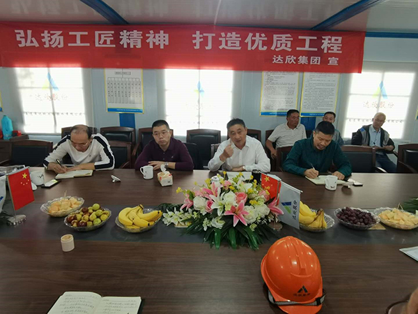 董事长一行首先对项目现场进行了巡查,对拉片式铝模以及整体全钢爬架进行了重点检查,听取了项目经理对项目情况的汇报,对检查中发现的问题提出了整改意见。随后,在项目部会议室与第八工程公司管理人员进行了座谈。