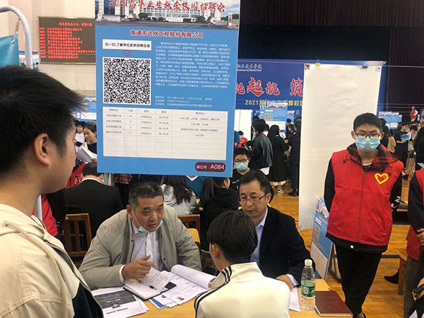 近日,第八工程公司组织参加了湖南省水利水电职业技术学院2021届毕业生秋季大型校园招聘会。会上,通过积极推荐及宣传,有许多优秀毕业生对我司颇感兴趣,纷纷表示有意向来公司就职,有些学生甚至得到老师的推荐专程来我司展位台应聘。我们将积极而为,通过此次招聘双向选择,为企业选用优秀的毕业生,助力企业高质量发展提供人才保障。