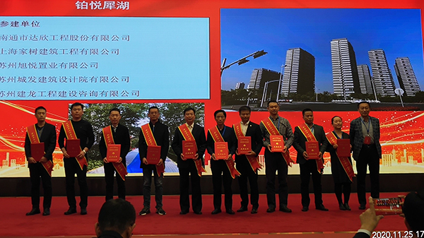 11月25日,2020中国土木工程詹天佑奖优秀住宅小区技术交流会(城市更新与发展)在北京举行,由爱游戏ayx首页集团第一工程公司承建的苏州铂悦犀湖项目荣获“2020中国土木工程詹天佑奖优秀住宅小区金奖”,这是爱游戏ayx首页集团连续三年荣获“中国土木工程詹天佑住宅小区奖”荣誉。