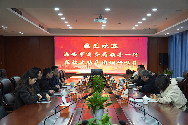 3月3日上午,海安市商务局党组书记、局长冯永进,副局长史霞兵一行莅临集团开展工作调研。董事长马和军、常务副总经理王邦国等陪同。