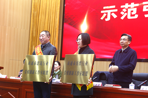 仪式上,对在开展劳模创新工作室创建和劳模党支部“薪火工程”系列行动中,大力弘扬劳模精神、劳动精神和工匠精神,充分发挥劳模在推动高质量、建设“强富美高”新南通中起到示范引领作用的先进典型进行了表扬,集团创建的“马和军劳模创新工作室党支部”被命名“南通市十佳劳模创新工作室党支部”荣誉称号,同时,集团副总经理、工会主席温鹤华还接收了“南通市建筑行业劳模创新工作室联盟”的牌匾。