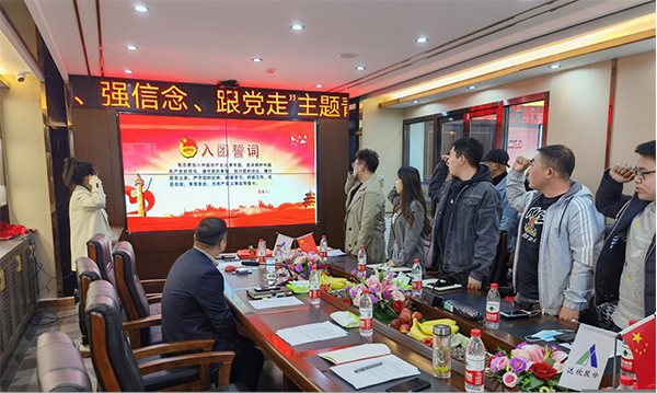活动首先重温了入团誓词,观看党的故事100讲-五四运动、爱游戏ayx首页集团党史发展纪录片。随后,优秀青年代表进行了慷慨激昂的“我为建党100周年献礼”发言以及青年突击队授旗仪式。为活跃现场气氛,还进行了击鼓扬花唱红歌趣味小游戏。