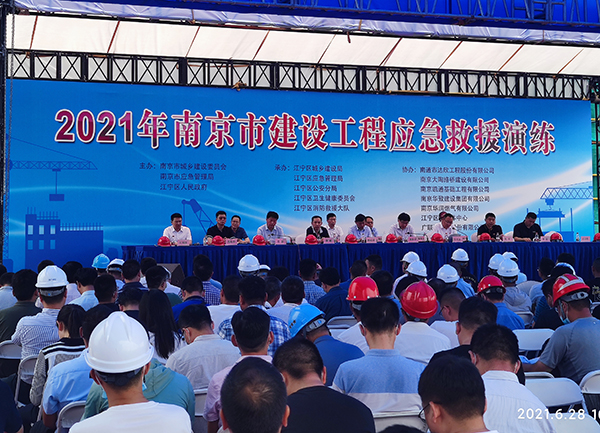 6月28日,由南京市城乡建设委员会、南京市应急管理局、江宁区人民政府主办的“南京市建设工程应急救援演练观摩会”在第二工程公司苏沃科技园项目部召开。南京市建委副书记朱家祥、南京市安委办专职副主任韩成颂;江宁区人民政府副区长孙兆金、江宁区城乡建设局局长易强等领导,全市施工企业、监理单位、建设单位负责人及相关人员等近500余人参加本次活动。集团常务副总经理王邦国主席台就坐。