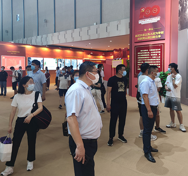 为庆祝中国共产党成立100周年,回顾党的光辉历程,激励广大党员继承和发扬党的光荣传统,牢记初心使命。7月11日上午,在第二党支部书记陈根军同志的带领下,所有党员及管理人员参观“百年征程 初心永恒—中国共产党在江苏历史展”。