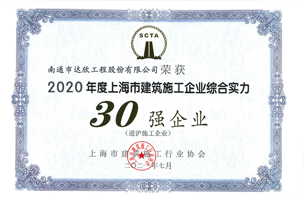 近日,2020年度上海市建筑业诚信企业、进沪综合实力排名揭晓,第一工程公司连续13年荣获“上海市建筑施工诚信企业”殊荣。另外,再次获得“上海建筑业进沪企业综合实力30强企业”称号。