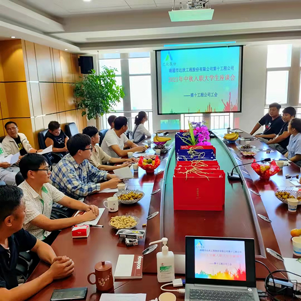 为进一步了解、关爱大学生思想动态和需求,9月8日,第十工程公司举行“迎中秋,大学生座谈会”。公司副总经理陈广兴、工会主席曹伍群、技术总工李铁桥等领导及18名大学生参加了座谈会,会议由工会主席曹伍群主持。