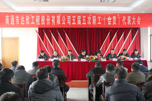 公司五届五次职工会员代表大会于1月31日召开。主席台就座的有海安县总工会常委、组织部长陆威生、海安建管局副局长、建筑工会主席徐培鸿、公司董事长马和军、公司党委书记刘厚纯等,公司90名职工代表参加了会议。