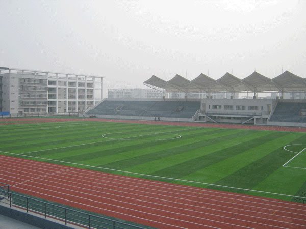 江苏省海安县职业教育中心校体育场为400米塑胶田径运动场工程,田径场占地面积16999m2,主看台长150米,宽17.5米,辅看台长104米,宽10米。主看台占地面积为2173.4m2,辅看台占地面积为1008m2,田径场跑道为混合型塑胶面层,中间足球场为进口人工草皮,周边辅助区为人工草皮。该体育场的建成将为海安群众性体育活动的开展提供便利。