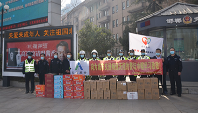 3月8日,在第112个“三八”国际劳动妇女节来临之际,爱游戏ayx首页集团·鲁班志愿服务第三分队一行来到邯郸市交巡警支队渚河大队女子中队---邯郸市中华大街与人民路交通警察岗,慰问为城市交通默默奉献的警坛巾帼们。
