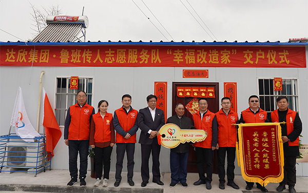 此次交户仪式由邓凤媚主持。仪式上,集团第九工程公司总经理陆良兵与胡集村副书记杨龙均进行了交钥匙仪式。吕文钧老人向集团“鲁班传人”志愿服务队赠送锦旗。