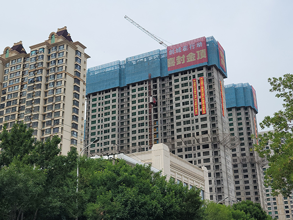 御京府西区二期项目,总建筑面积178715.78平方米,由4栋高层和地下车库组成,其中21#楼和25#楼总高度99.15m,地下2层,地上32层;22#楼和23#楼总高度97.65m,地下3层,地上32层;开工伊始,项目部时刻将安全和质量放在首位,大力贯彻落实“安全高效铸精品,环保诚信创辉煌”的管理方针,克服困难,迎难而上,科学筹划,精心组织,周密部署,有条不紊地推动项目的施工建设。