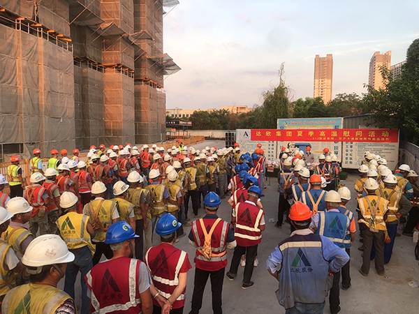 盛夏时节,热浪滚滚,气温居高不下。第一工程公司总经理倪志荣带队走访慰问重点建设项目施工工地一线作业人员,为他们送去炎热夏季的一份清凉和关心。