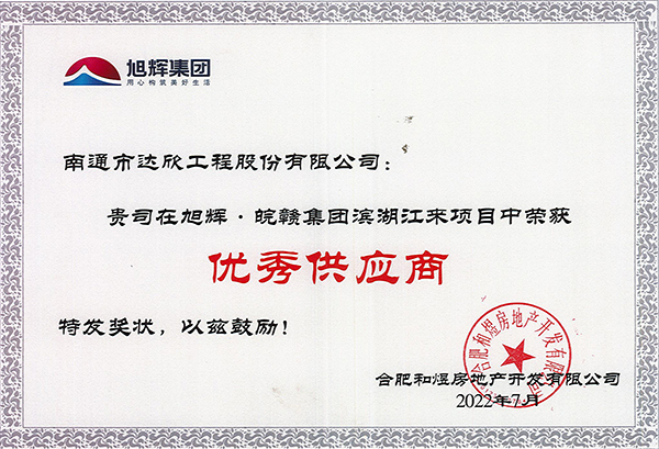 近日,旭辉·皖赣集团对2022年度优质供应商进行表彰,集团第一工程公司在旭辉·皖赣集团滨湖江来项目中荣获优秀供应商称号。