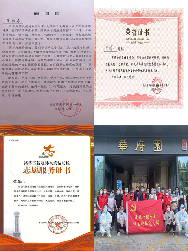 近日,第四工程公司陆续收到来自石家庄桥区西区南长街道办事处、裕华区精神文明建设委员会对马和春、花敏等同志的感谢信,对他们在石家庄市疫情期间,主动请缨加入志愿者队伍,不惧风险、知难而进,为社区物资配送、核酸检测、信息统计、环境消杀、防控措施宣传等方面所做的贡献和展现出的舍小家为大家的无私、担当、奉献精神表示感谢。