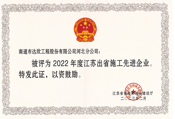 第四、六党支部被评为“2022年度江苏进津、冀施工优秀党组织”;杨静、陈正进、马和春、高云青被评为“2022年度出省建筑施工先进个人”;徐仁忠、傅海荣被评为“2022年度江苏进津、冀施工先进企业经理”;谢广财、徐祝军被评为“2022年度江苏进津、冀施工优秀党务工作者”;杨静、傅海荣、张维琪、崔恒俊被评为“2022年度江苏进津、冀施工优秀共产党员”;谢兆波、刘华庆、毛异东、朱玉平被评为“2022年度江苏进津、冀施工优秀建造师”;马和春、郝路、束长春被评为“2022年度江苏进津、冀施工先进工作者”。