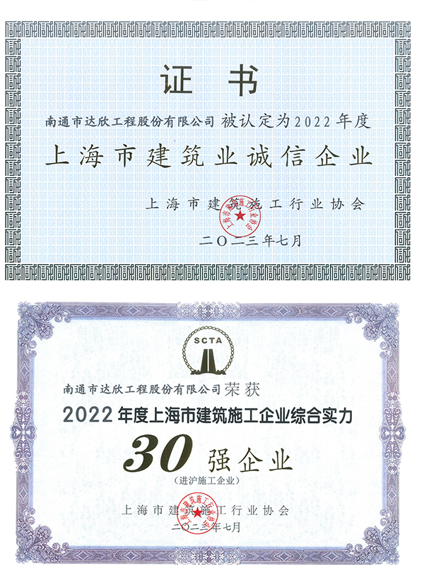 近日,上海市建筑施工行业协会公布了《2022年度上海市建筑施工企业综合实力数据统计结果的通知》。集团第一工程公司连续十六年获评“2022年度上海市建筑施工企业综合实力30强企业”和“2022年度上海市建筑业诚信企业”称号。