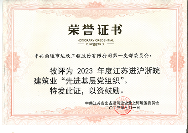 近日,从江苏省住房和城乡建设厅驻上海办事处传来喜讯,集团第一党支部委员会被评为“2023年度江苏进沪浙皖建筑业先进基层党组织”荣誉称号,倪志荣同志获“全省住房和城乡建设行业优秀共产党员”、马宁伟同志获“江苏进沪浙皖建筑业优秀共产党员”、陈元国同志获“江苏进沪浙皖建筑业优秀党务工作者”。