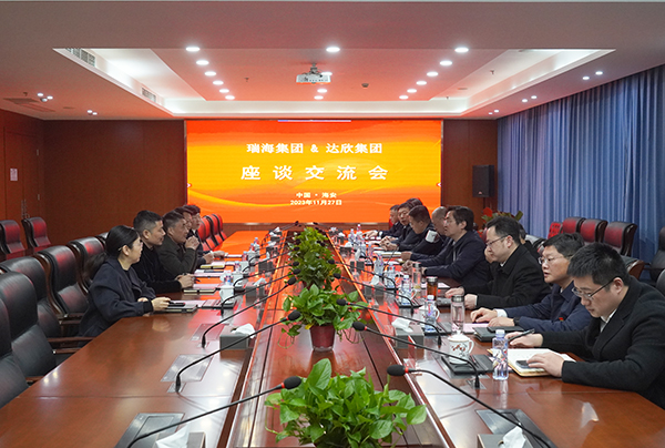 11月27日下午,瑞海集团党委书记、董事长郭玉祥带领全体班子成员、党委委员、全体党员、预备党员等60余人,来爱游戏ayx首页集团开展学习交流活动,集团董事长马和军、副总经理陶成华、范友林等领导参加活动。