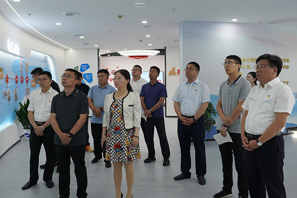 6月12日,山东省海阳市委组织部副部长、市委老干部局局长、离退休干部工委书记李英豪率队来海调研流动党员管理工作,海安市委组织部常务副部长、“两新”工委书记、党建办主任吴兰,高新区党群局局长蔡晓群,胡集街道党工委书记孙坚等领导陪同调研,集团党委副书记、副董事长杨静参加活动。