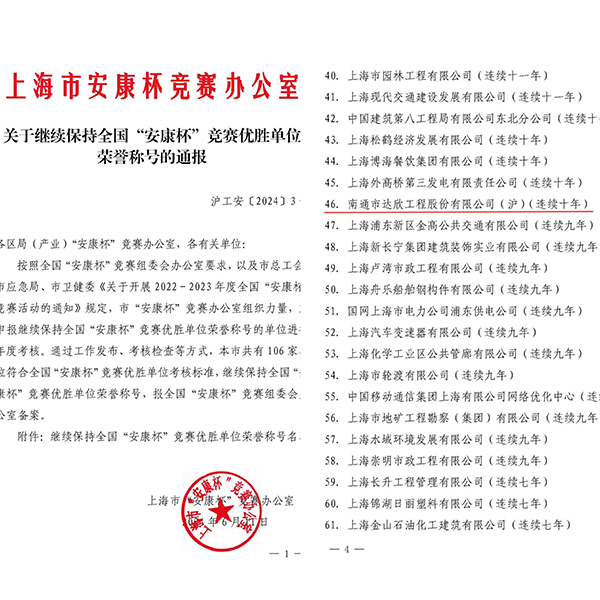 日前,上海市“安康杯”竞赛办公室沪工安【2024】3号文件,对获得2022-2023年全国“安康杯”竞赛优胜单位荣誉的集体进行通报,爱游戏ayx首页集团连续十年被评为全国“安康杯”竞赛优胜单位。