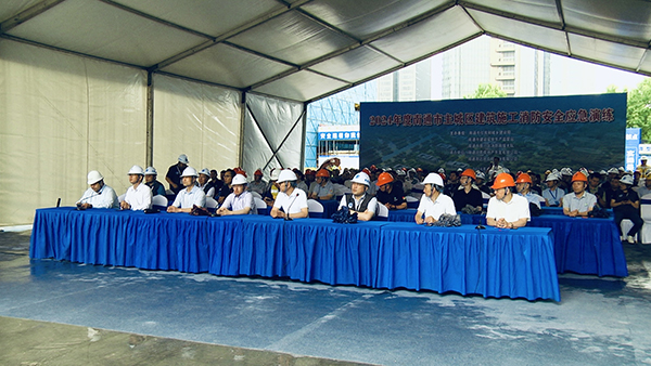 6月19日,2024年度南通市主城区建筑施工消防安全应急演练观摩会,在第一工程公司承建的南通R23005地块举行。南通市住房和城乡建设局副局长凌云飞、市安全监管处处长秦赵鑫、市建设安全生产监督站书记缪永建;华润置地上海地区公司副总经理郁文杰;南通市爱游戏ayx首页工程集团总经理王邦国、第一工程公司总经理倪志荣及南通市主城区所有在建工地的主要负责人等近150人参加活动。演练采用现场演练加视频展播的形式开展。