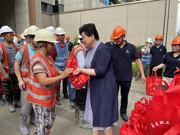 葛玉琴深入施工现场,看望慰问了高温下坚守岗位的一线职工,为他们送上慰问用品,并叮嘱大家注意安全,做好防暑降温工作。她说,防暑降温是夏季重要劳动保护工作,直接关系广大劳动者的身体健康和企业的安全生产。她希望,大家共同努力,让安全意识更加深入人心,切实筑牢安全屏障,项目部要合理安排作业时间,做好防暑应急措施,切实维护建设者劳动安全健康权益。