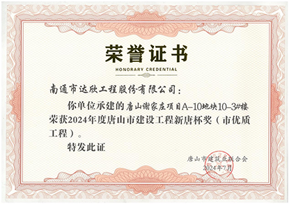 近日,由第六工程公司承建的唐山谢家庄项目A-10地块10-3#楼、唐山谢家庄项目A-14地块14-3#楼、14-5#楼荣获“2024年度唐山市建设工程新唐杯奖(市优质工程)”。