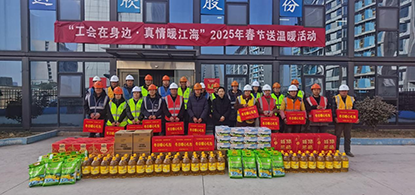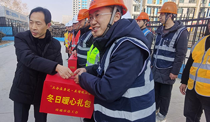 1月13日,南通市总工会党组成员、经审会主任周正秋,南通市总工会权益保障部部长赵周恒一行,来到爱游戏ayx首页集团南通R23005地块项目建设现场,开展“工会在身边 真情暖江海”2025年春节送温暖活动,为奋战在一线的工作人员送上冬日暖心礼包和新春的祝福与慰问。