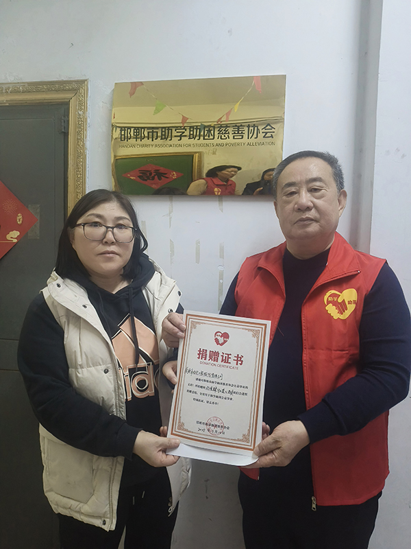 受工程公司党支部委托,第三工程公司办公室主任封焕珠、第三志愿服务分队长谭宝根、劳保用品监督员吴忠平,带着全体党员爱心物品,到邯郸市助学助困慈善协会进行捐赠活动。协会郭虎会长对公司的爱心行为表示肯定,对公司的奉献和担当精神表示赞誉,并代表协会表示感谢。