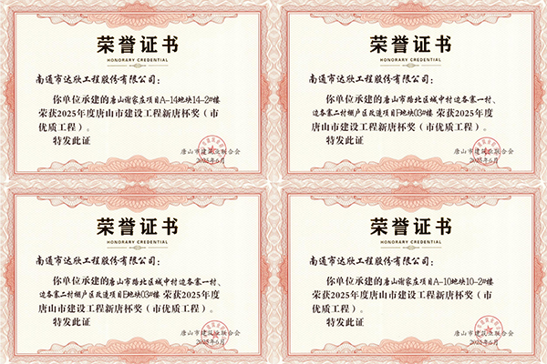 近日,从唐山市建筑业联合会传来捷报,由第六工程公司承建的唐山市路北区城中村边各寨一村、边各寨二村棚户区改造项目E地块03#楼,唐山市路北区城中村边各寨一村、边各寨二村棚户区改造项目F地块03#楼,唐山谢家庄项目A-10地块10-2#楼,唐山谢家庄项目A-14地块14-2#楼4项工程获得唐山市建筑工程新唐杯奖(市优质工程)。