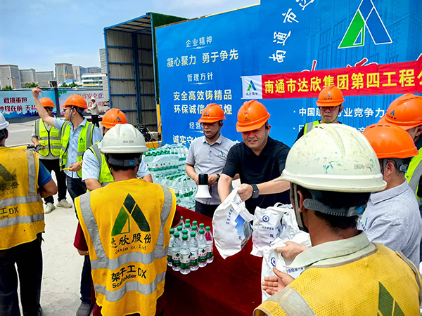 正值盛夏,烈日炎炎,施工现场的工友们不惧高温,坚守岗位,全力推进项目建设进度。工程公司总经理傅海荣详细询问工友们的工作和生活情况,对大家在高温下辛勤付出表示衷心感谢。随后,傅海荣亲自将精心准备的防暑降温礼品分发到每一位工友手中,为工友们在炎炎夏日送去一份贴心的关怀。
