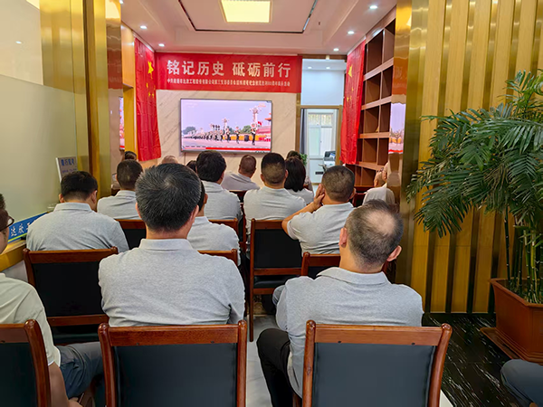 为纪念中国人民抗日战争暨世界反法西斯战争胜利80周年,弘扬爱国主义精神,增强全体员工的责任感与使命感,9月3日上午,工程公司党支部组织全体员集中观看纪念抗战胜利八十周年阅兵活动直播。